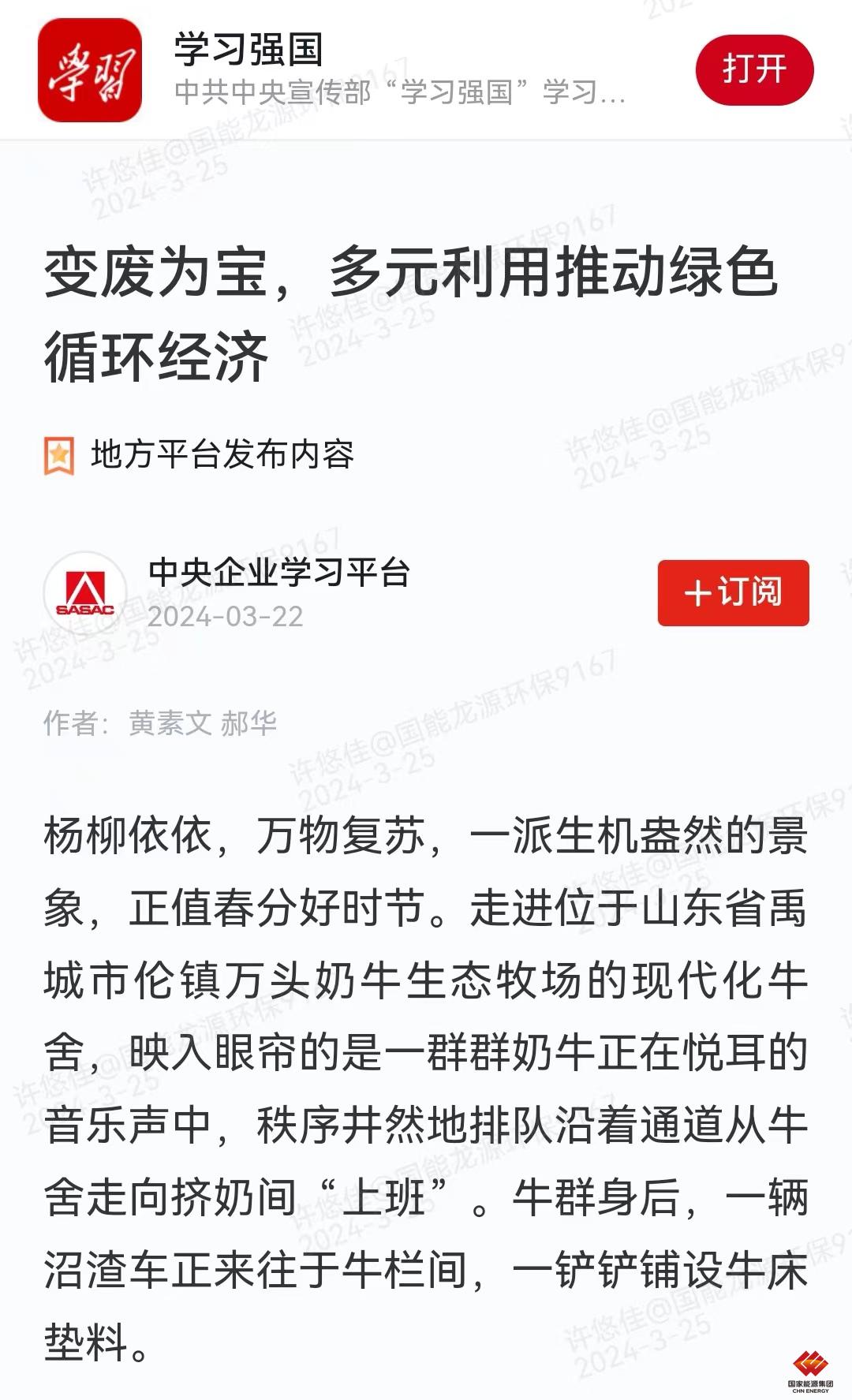 學(xué)習(xí)強(qiáng)國3月22日電(通訊員 黃素文 郝華)楊柳依依,萬物復(fù)蘇,一派生機(jī)盎然的景象,正值春分好時(shí)節(jié)。走進(jìn)位于山東省禹城市倫鎮(zhèn)萬頭奶牛生態(tài)牧場的現(xiàn)代化牛舍,映入眼簾的是一群群奶牛正在悅耳的音樂聲中,秩序井然地排隊(duì)沿著通道從牛舍走向擠奶間“上班”。牛群身后,一輛沼渣車正來往于牛欄間,一鏟鏟鋪設(shè)牛床墊料。