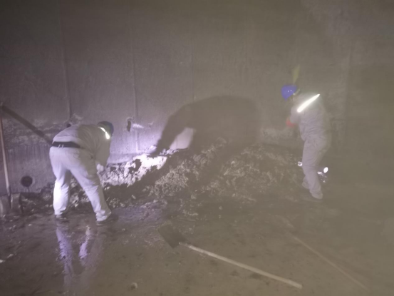 在脫硫2號吸收塔0米處,工作人員正在拆除脫硫2號吸收塔0米的人孔門螺栓,他們用電動扳手代替了以往的機械扳手,大大提高了機組檢修效率。