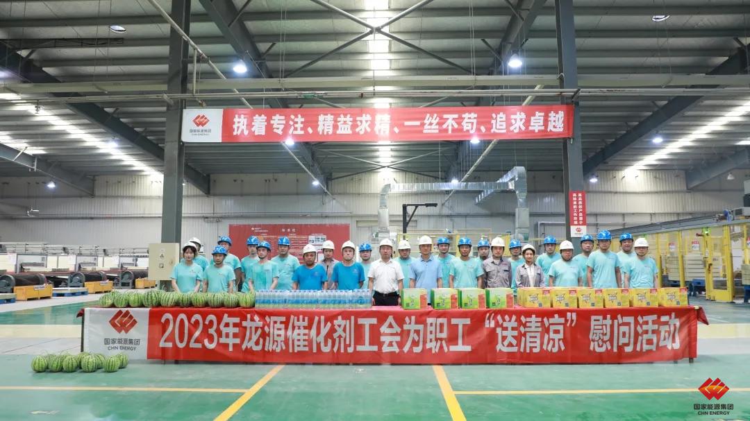 夏日送清涼,點滴潤人心。龍源催化劑板塊積極開展一線職工“夏送清涼”慰問活動。公司副總經理鄭鵬帶隊慰問組分別在無錫和宜興兩個廠區為職工們送上防暑的飲料和西瓜,極大地鼓舞了一線職工的工作熱情。